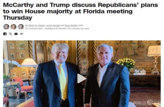 就在国会山骚乱发生大约三周后,麦卡锡曾前往海湖庄园与“情绪低落的”特朗普会面,并呼吁共和党“团结起来”。当时,两人还拍了张合照,照片上,特朗普咧着嘴,笑得颇为开心。