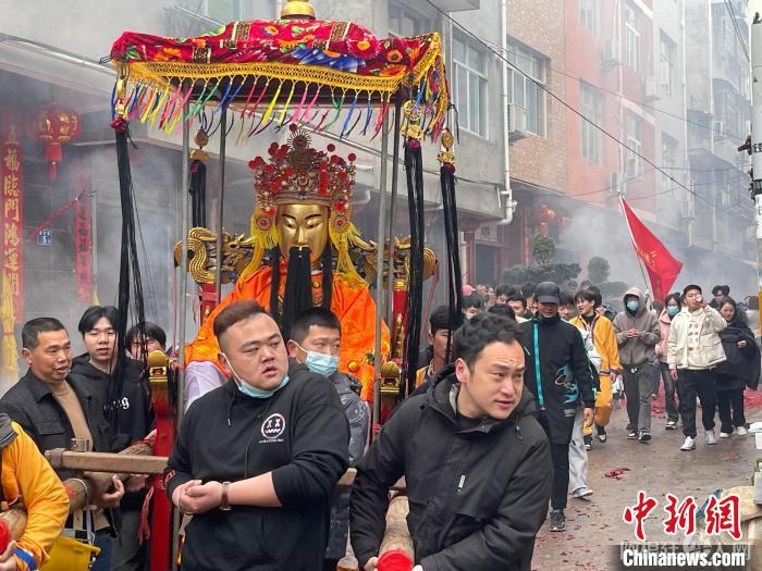 峡阳镇”千年盛宴摆大碗”活动之一"迎翁爹"。彭子恒 摄