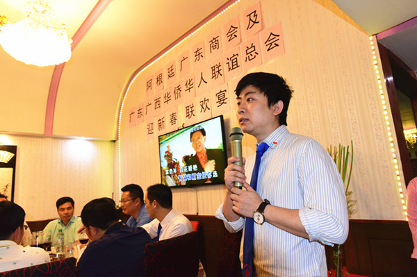 中国驻阿使馆陈志军领事,阿根廷广东广西华侨华人联谊总会会长杨镜湖,阿根廷广东商会会长余永辉分别发表致辞,共同祝愿旅阿华人华侨新春吉祥如意,事业发达,身体健康,在新的一年里取得更大的业绩,创建更加和谐的华人社会,共同谱写旅阿华人新篇章。