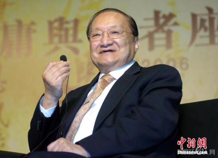 金庸拿着一本新出版的《天龙八部》小说。Udndata 摄 图片来源:东方IC