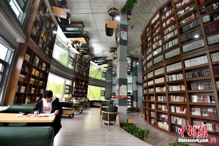 资料图:世界读书日,山西太原市民在太原文瀛城市书房阅读书籍,品味“书香”。中新社记者 韦亮 摄