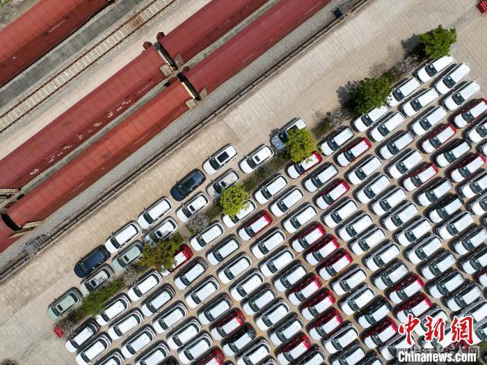 资料图:小汽车被运往各地。 王以照 摄