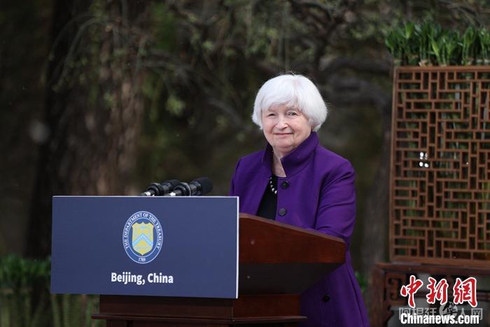 4月8日,美国财政部长耶伦在北京表示,美中两国经济关系紧密,健康的经济关系将为两国带来显著益处,稳定的双边经济关系是两国的共同期望。 中新社记者 蒋启明 摄