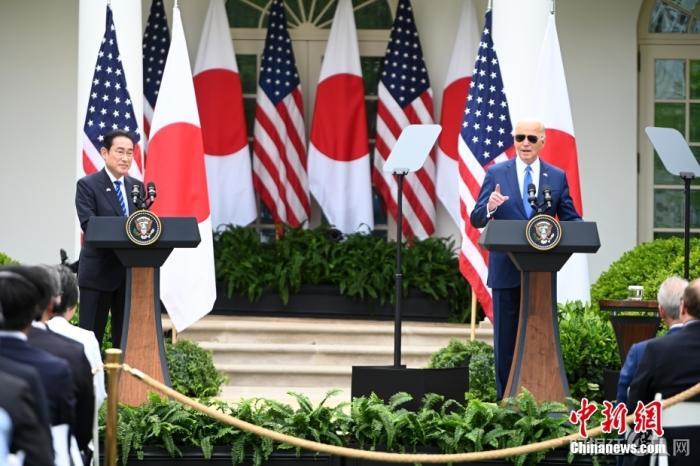 资料图:当地时间4月10日,华盛顿,日本首相岸田文雄对美国进行国事访问。图为岸田文雄与美国总统拜登在白宫举行联合记者会。