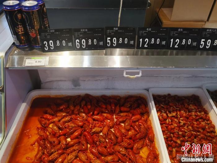 超市里卖的熟食小龙虾。 中新网记者 谢艺观 摄