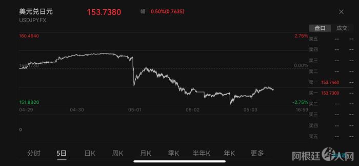 如,韩国政府表态称,对于汇率市场高度警惕。印尼央行更是直接下场,紧急加息并买入本币干预汇率。日本当局虽未明确表示采取行动,但据日本多家媒体报道,政府已在4月29日和5月2日连续对市场进行了共计约8万亿日元(约合3754亿元人民币)的干预。
