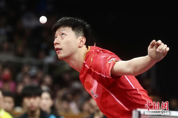 资料图:马龙在比赛中发球。中新社记者 易海菲 摄