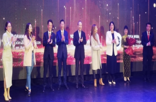 中国驻阿根廷大使馆王卫大使、阿根廷布市政府代表Denise Sanviti、阿根廷中国民族服饰协会名誉会长阿根廷13区Florencia Scavino区长、阿根廷中国和平统一促进会会长何文强、阿根廷妇女儿童联合会会长陈静、阿根廷华助中心主任严祥兴、阿根廷洪门协会会长尤震、阿根廷中国民族服饰协会会长陈铭、执行会长林海洪共同按动启动按钮。