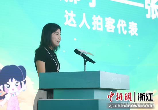 达人拍客代表张娜发言。中新社记者 王刚 摄