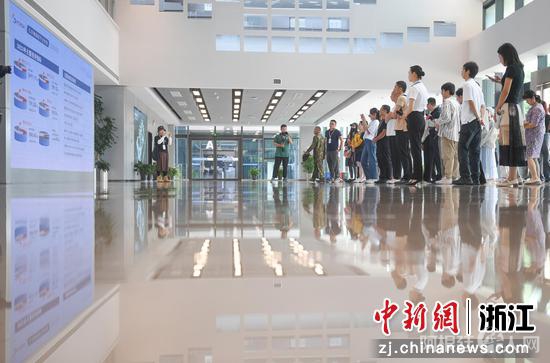 采风团成员参观杭州湾上虞经济开发区产业协同创新中心。中新社记者 王刚 摄
