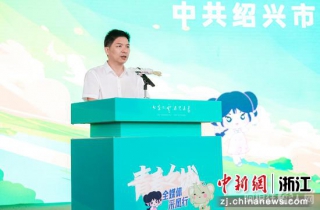 中共绍兴市上虞区委常委、宣传部部长周晓国在启动仪式上致辞。中新社记者 王刚 摄