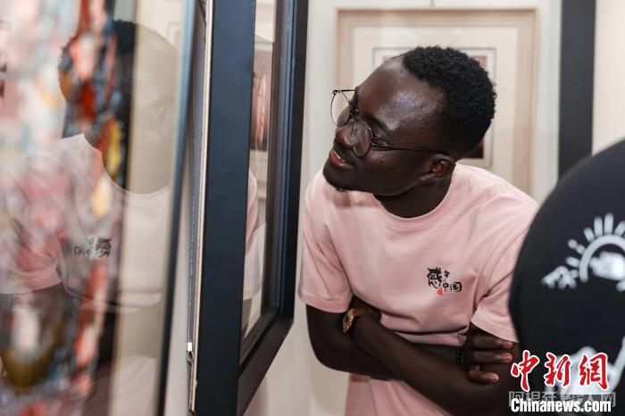 加纳的“洋弟子”温福观看杭绣作品。 王刚摄