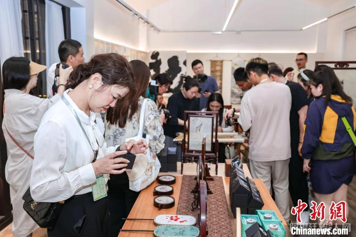 海外华文媒体代表了解杭绣作品。 主办方供图