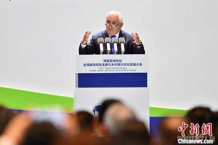 5月31日,拉法兰在博鳌亚洲论坛全球城市绿色发展与乡村振兴论坛大会开幕式上致辞。记者张浪摄