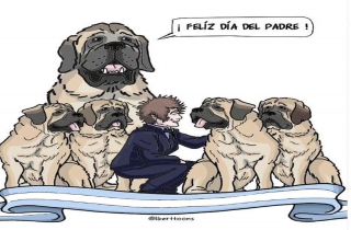 同时还在文中附上了一张自己和被视为“孩子”的多只爱犬的漫画。在画中,米莱抚摸着其中一只爱犬,而后排最大的一只爱犬(起名叫柯南,已于2017年去世)则拟人化地说“父亲节快乐!”。