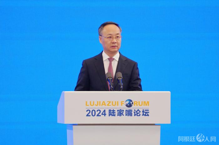 中国人民银行副行长、国家外汇管理局局长朱鹤新在2024陆家嘴论坛上发表演讲。图源:陆家嘴论坛官网