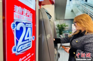 4月29日,青海省西宁市,西宁曹家堡国际机场境外来宾支付服务中心建成运营。图为青海民族大学留学生体验ATM机。 中新社记者 孙睿 摄