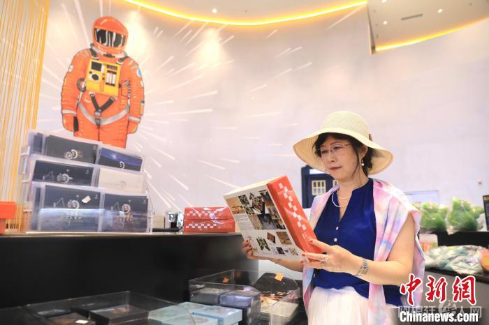 7月4日,来自19个国家的24家华文媒体代表走进位于四川省成都市郫都区的成都科幻馆,感受独特的“科幻巧思”。图为一位海外华文媒体代表在文创产品展厅挑选具有科幻元素的玩具。中新社记者 王磊 摄