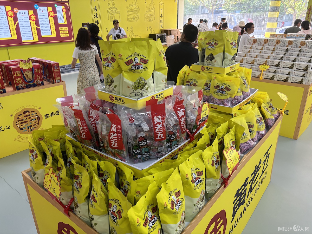 经过传统技艺和现代化设备的共同加工,一块块“黄老五”花生酥、米花酥、锅巴酥、麻花酥及各类坚果乳酥等产品从这个占地面积106亩的生产区域流向市场、走出国门。