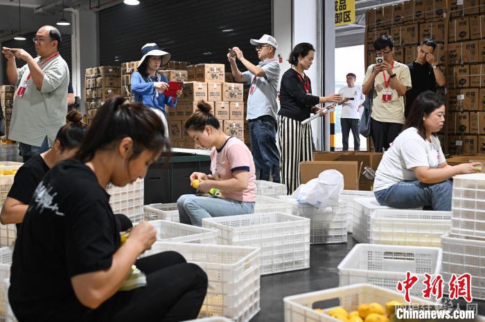 7月8日,重庆潼南,海外华文媒体代表在雪王农业(重庆)有限公司包装车间参观。当日,“行走中国·2024海外华文媒体川渝行”参访团一行走进重庆市潼南区,实地了解当地柠檬产业发展。据悉,重庆潼南是世界三大柠檬产地之一,柠檬种植面积达32万亩,柠檬鲜果及柠檬产品远销俄罗斯、新加坡、东南亚等30多个国家和地区。近年来,“潼南柠檬”从技术研发、种苗培育、标准化种植、精深加工等为一体的柠檬全产业链在当地日臻完善。中新社记者 何蓬磊 摄