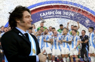 (阿根廷华人网7月16日讯 黄东)在阿根廷国家队再次摘得美洲杯桂冠后,总统米莱邀请球员们到总统府庆祝。
