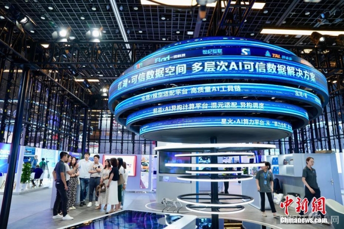 7月3日,2024全球数字经济大会数字经济沉浸式体验区及新技术、新产品发布区吸引参观者。中新社记者 陈芳婷 摄