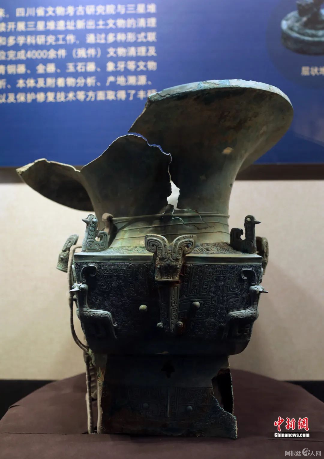 小新了解到,三星堆遗址3号至8号祭祀坑出土编号文物1.7万余件,相对完整器物4500余件,文物存在残缺、锈蚀、断裂等不同病害,保护修复任务艰巨。三星堆博物馆、四川省文物考古研究院与故宫博物院、北京科技大学等16家文保科研机构合作,截至今年6月,已完成约4000件文物的清理保护工作。