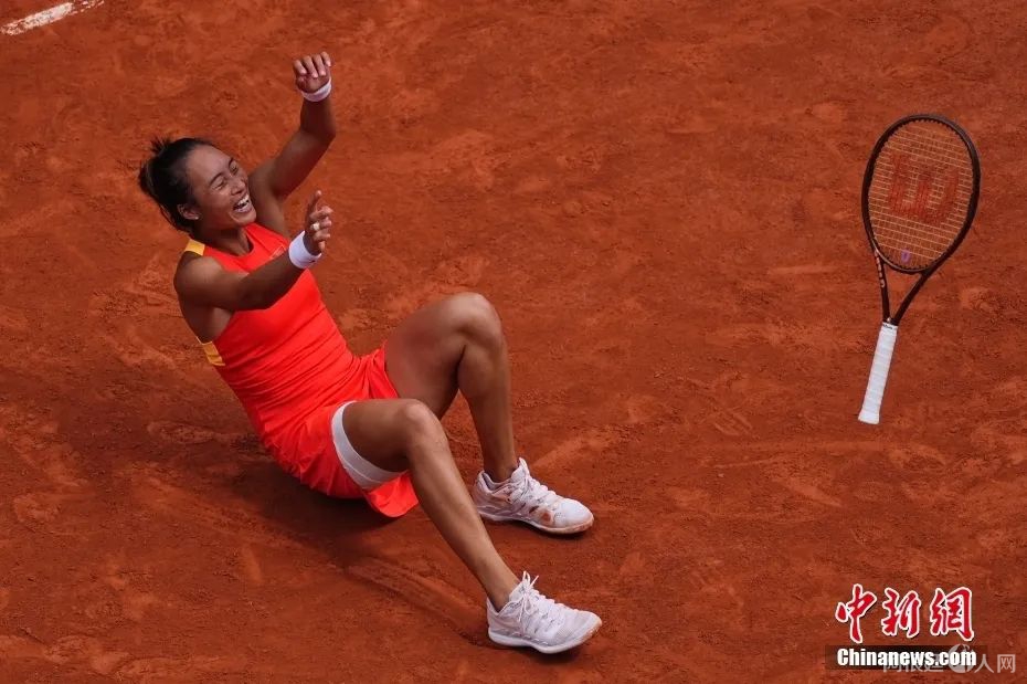比赛结束时,郑钦文倒在红土场上庆祝胜利,她表示为自己、为国家感到开心。