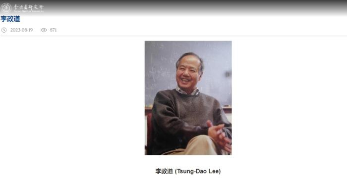 李政道先生。图片来源:上海交通大学李政道研究所官网截图