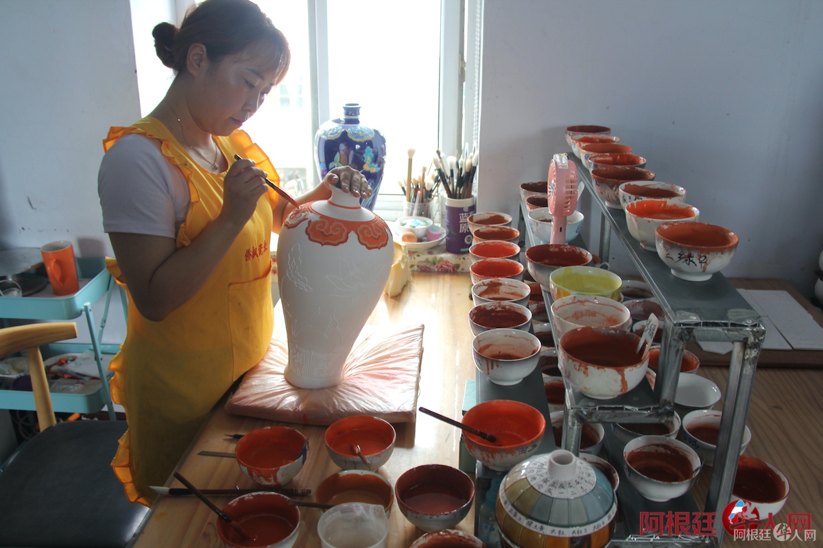 乔琳介绍,乔家窑将现代科技和传统工艺相结合,生产一代、研制一代、储备一代,产品开发实现创意化、品位化、个性化,形成手绘瓷、印花瓷、贴花瓷、色釉瓷等数十个系列,上百个花色品种,实现产品材质美、造型美、画面装饰美的要求。