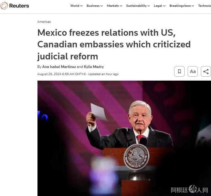 美联社报道称,洛佩没有详细说明暂停意味着什么。墨西哥外交部没有回应该媒体的置评请求。加拿大驻墨大使馆也没有立即回应路透社的置评请求。