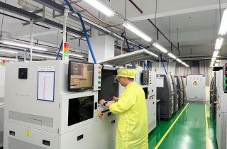 7月17日,记者走进台企彩智电子科技(江西)有限公司,工厂内一位员工正在操作仪器。李韵涵 摄