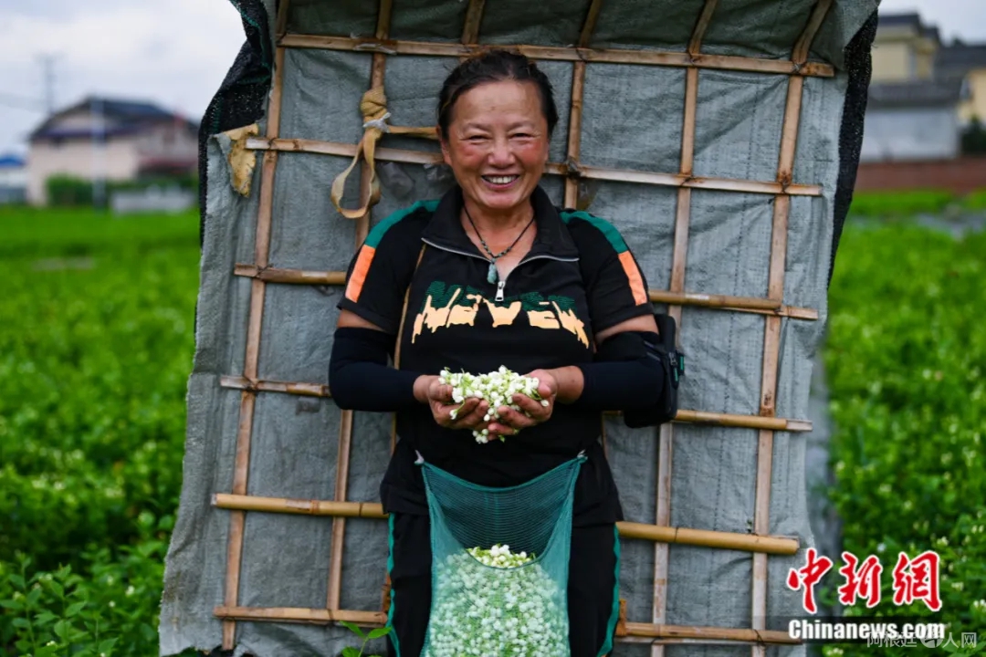 近期,大街小巷的花店里总少不了茉莉花束的点缀,而许多人不知道的是,四川省乐山市犍为县正是这馥郁芬芳的茉莉花的种植地。随着茉莉花缀满枝桠,犍为县的茉莉花田里热闹忙碌,花农们正趁着好天气采摘这个时节馈赠的“芬芳”……