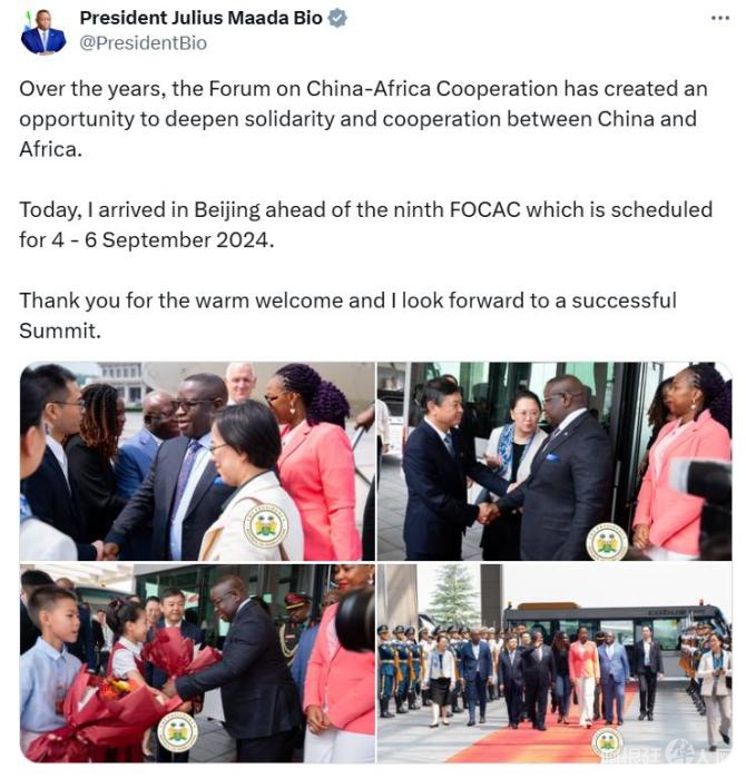 塞拉利昂总统比奥表示,多年来,中非合作论坛为深化中非团结合作创造了机会。比奥表示,期待峰会成功举办。