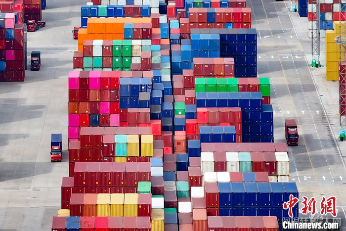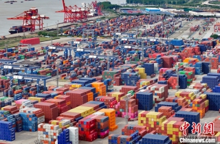 资料图为5月9日拍摄的南京龙潭港进出口集装箱码头。(无人机照片) 中新社记者 泱波 摄