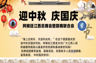 阿根廷江西总商会暨赣商联合会即将举办“情满中秋,喜迎国庆”联欢活动,把江西老乡们齐聚一堂,用乡音话乡情,在海外用思念表达着对祖国和家乡的祝福。