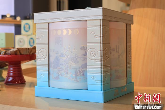 9月13日,浙江杭州,良渚古城遗址公园文创店展出良渚文化主题月饼礼盒。 鲍梦妮 摄
