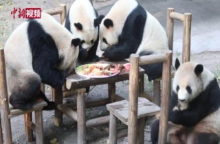 河马的院子里,饲养员还用胡萝卜摆出了“中秋”两个字,给萌态可掬的河马送上节日祝福。离河马院子不远的小熊猫馆同样是满满的节日氛围,由粑粑、南瓜、胡萝卜、苹果、香蕉等制成的月饼发出阵阵香味,小熊猫们围在一起享用美食。(贾楠 李可怡)