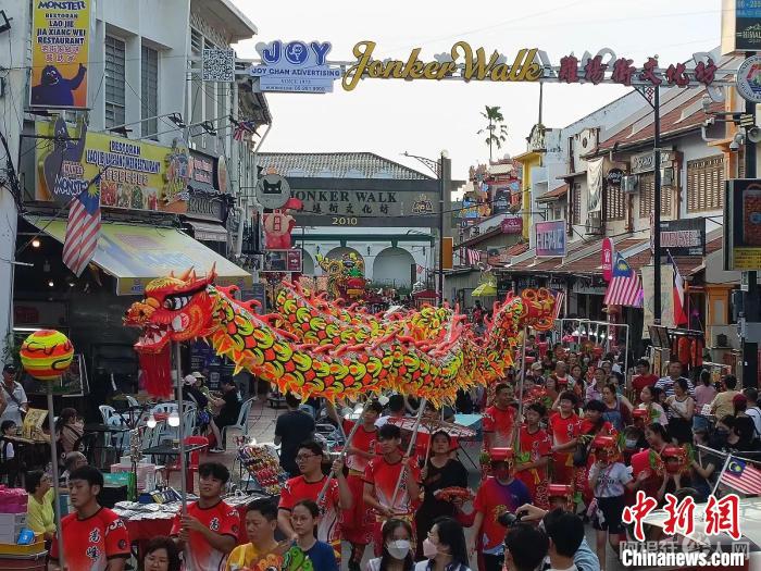 在鸡场街,“千龙齐舞”成为迎接中秋的亮点。其中全长超过200米的“马中友谊祥龙”身披金鳞,昂首摆尾,在百人的合力舞动下,穿梭于古街,引来游客的赞叹与欢呼。颜天禄介绍称,当地各龙狮武术团陆续亮相,“我们希望把中秋节过得热闹,让来自不同国家的游客感受欢乐的节日氛围。”