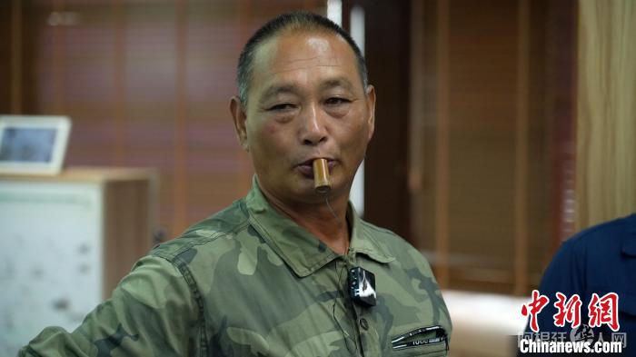 9月20日,金伟国在上海崇明东滩鸟类国家级自然保护区接受媒体采访。中新社记者 周孙榆 摄