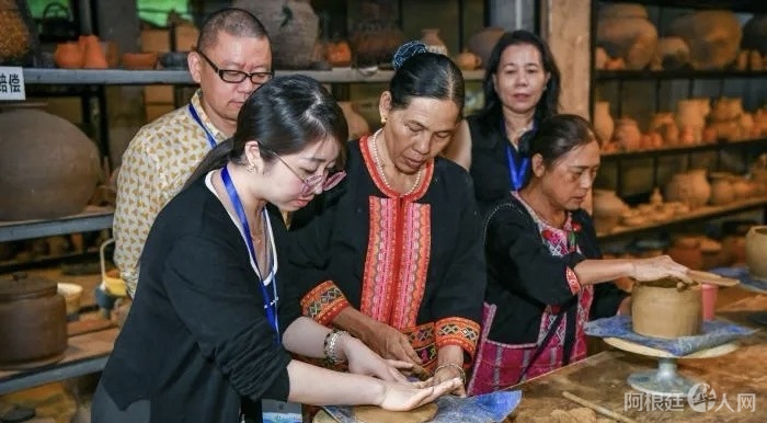 图为9月24日,在海南昌江,海外华文媒体人士体验黎族原始制陶技艺。骆云飞摄