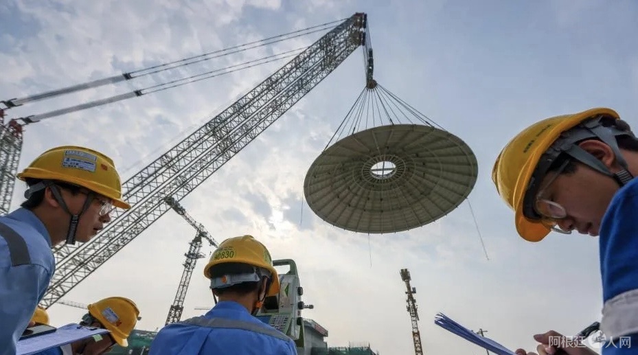 2024年2月6日,全球首个陆上模块化小型核反应堆“玲龙一号”外穹顶在海南昌江吊装完成。骆云飞摄
