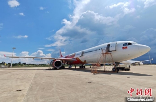 8月26日,越南越捷航空公司空客A330客机正在海南自贸港一站式飞机维修产业基地进行检修。中新社记者 王子谦 摄