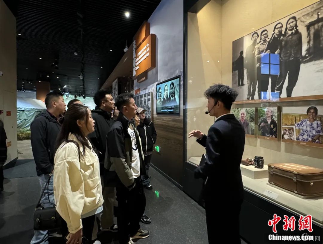 图为青海原子城纪念馆内,游客参观照片聆听背后故事。潘雨洁 摄