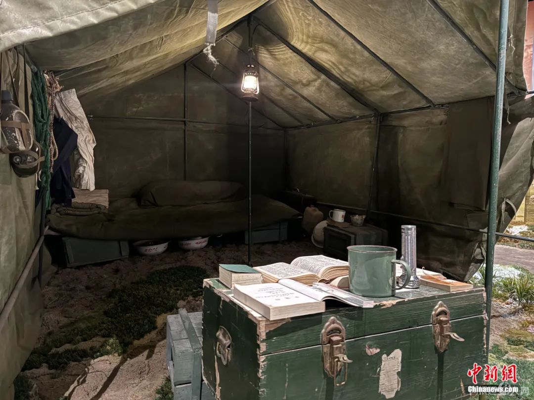 图为原子城纪念馆内展出的221基地职工所住的帐篷。潘雨洁 摄