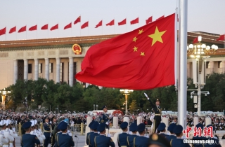 资料图:天安门广场举行2024年国庆升国旗仪式。中新社记者 盛佳鹏 摄