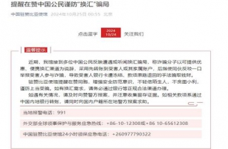 中国驻赞比亚使馆提醒在赞同胞增强安全防范意识,不轻信陌生人,不贪图小利,谨防上当受骗。如有换汇需求,请务必通过银行等正规合法渠道办理。