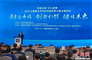 中新社上海11月7日电 (范宇斌)作为第七届中国国际进口博览会配套现场活动之一,侨连五洲·沪上进博——2024汇聚高水平对外开放侨界力量主题论坛7日在国家会展中心(上海)举行。