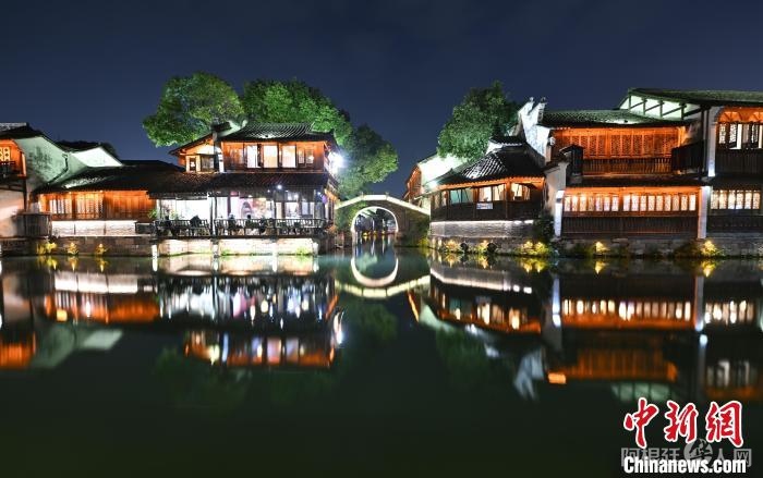 11月21日,夜幕降临后,浙江嘉兴乌镇景区夜景璀璨夺目。 中新社记者 王刚 摄