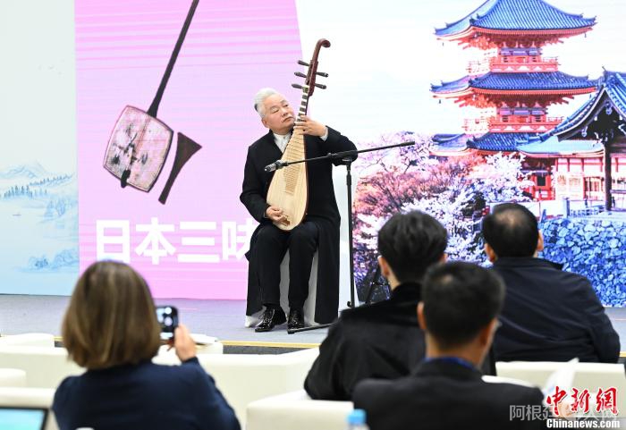 方锦龙在互联网文化交流互鉴论坛上演奏。中新社记者 王刚 摄